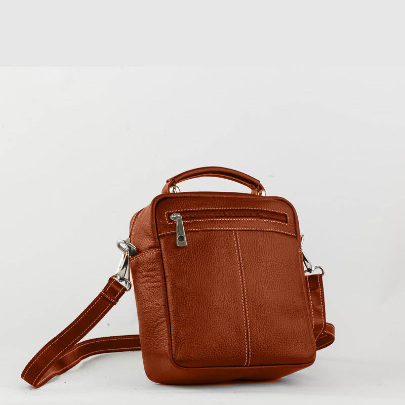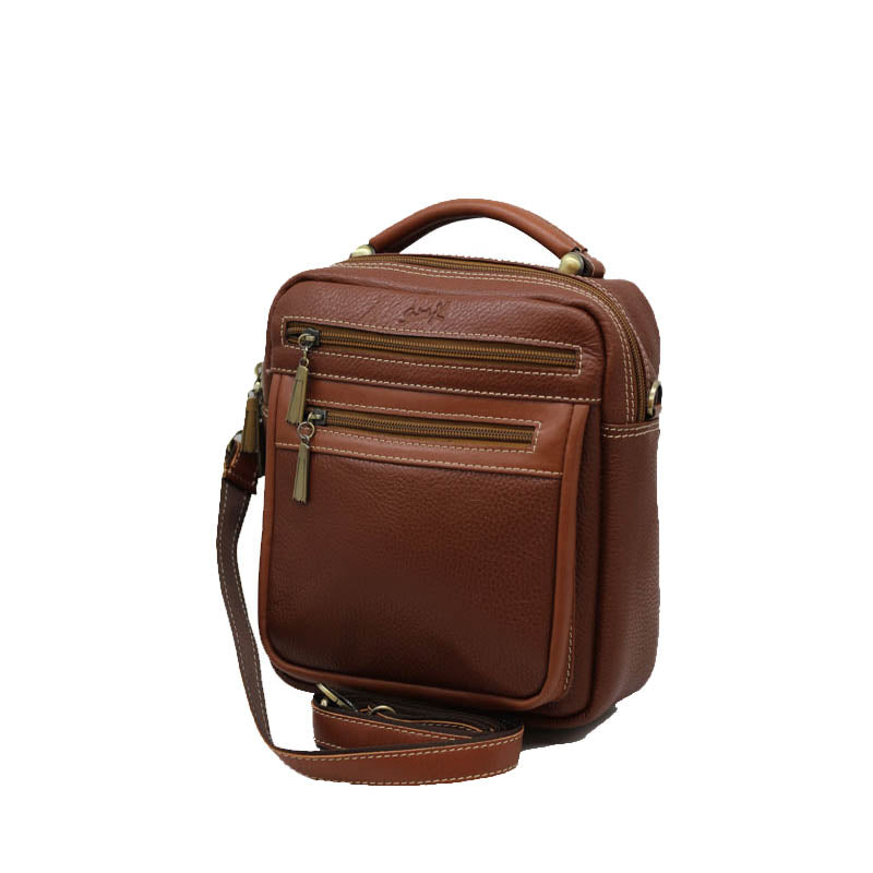 D5086U - شنطة كروس جلد طبيعي بحزام للكتف قابل للفصل, جيبين أمامين,جيب خلفي و يد للرجال من سيفن كيه, هافان