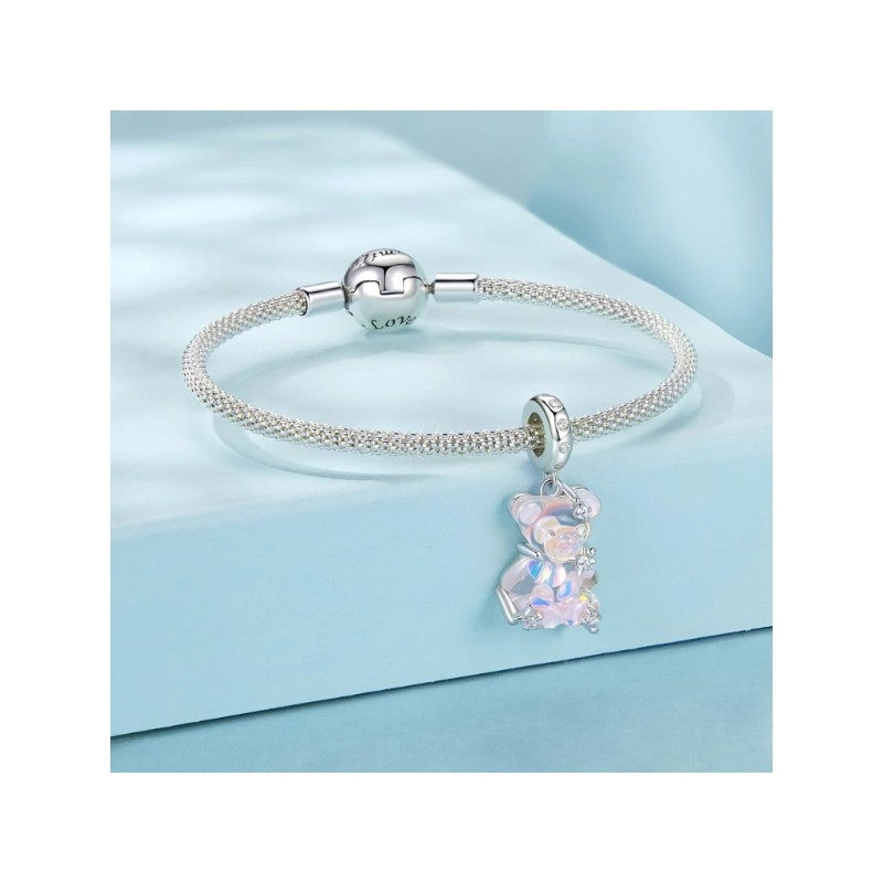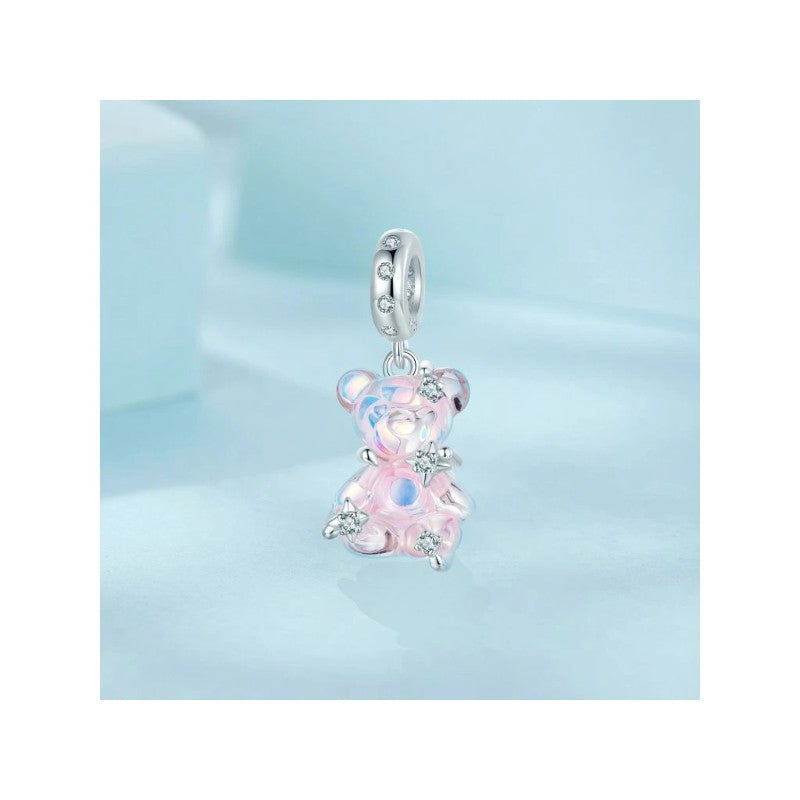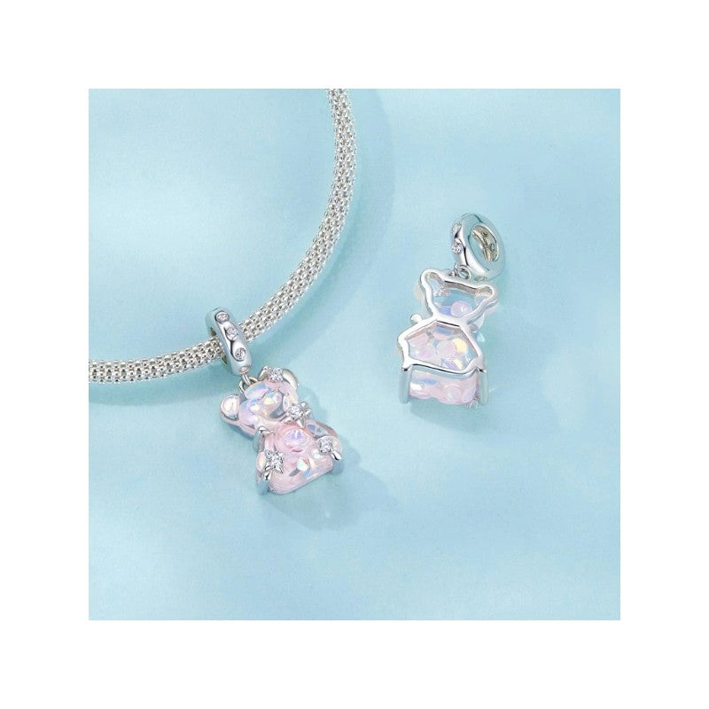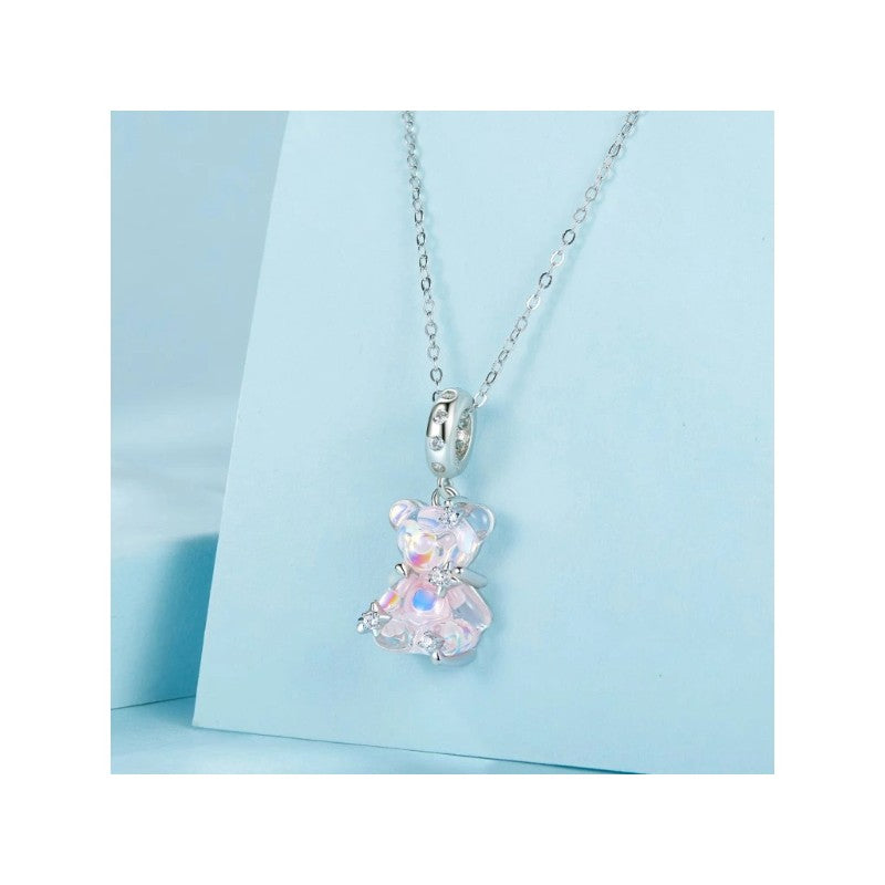 دلاية فضة عيار 925 بشكل دب كريستالي وردي