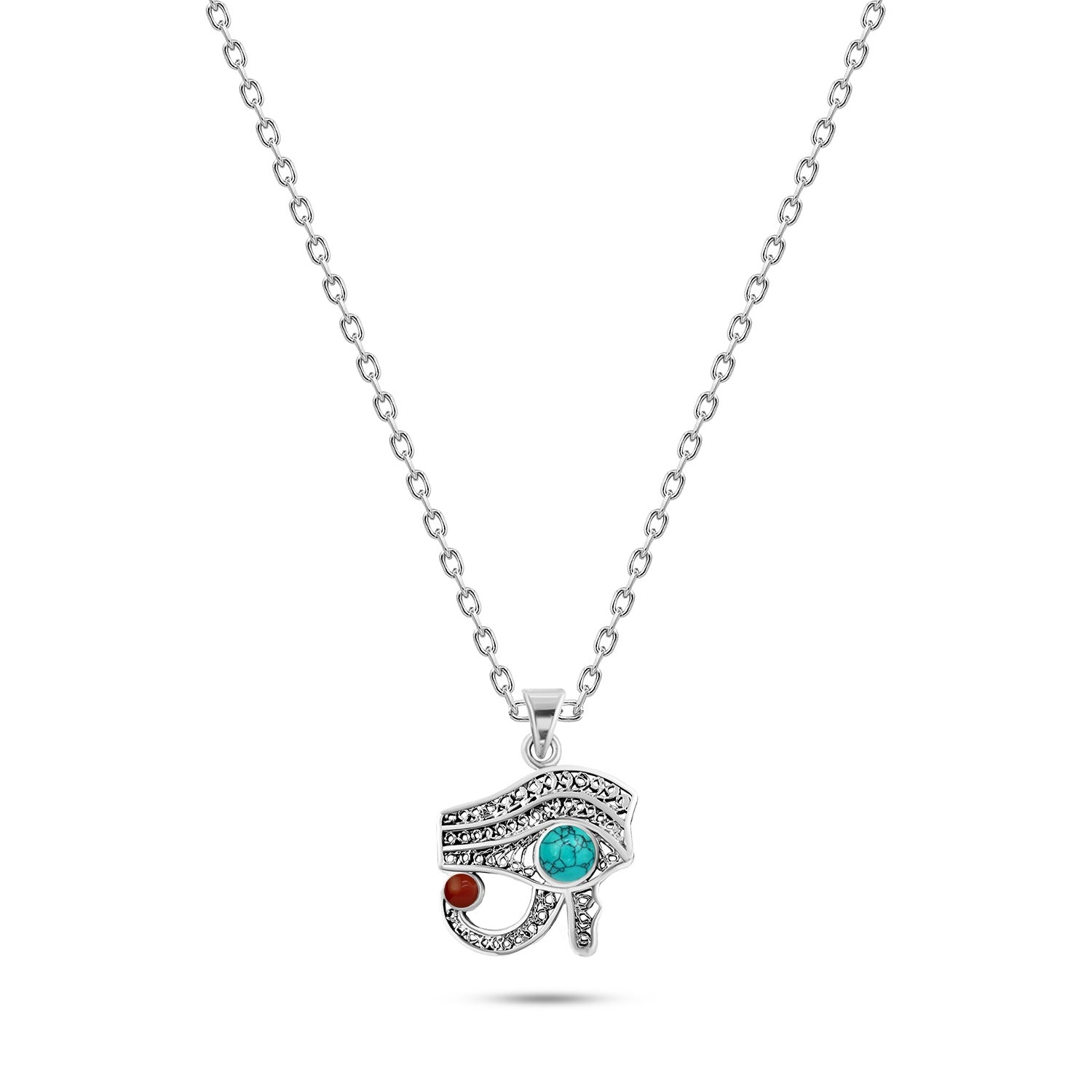 عقد فضة مصري حريمي عيار 925 بتصميم فرعوني عين حورس - متوج بحجر فيروزي