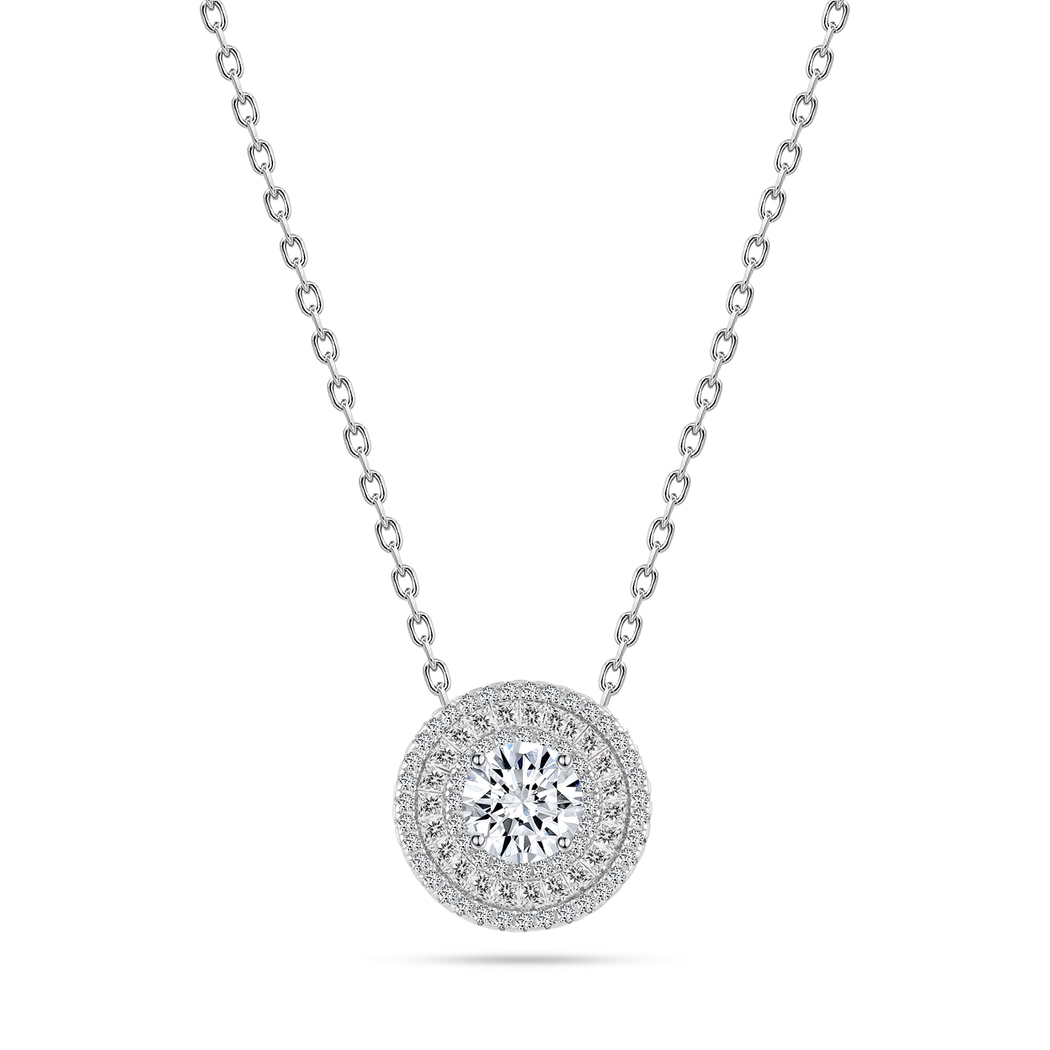 عقد أنيق مصنوع من فضة عيار 925 بتصميم دائري بسيط يضفي لمسة من الرقي، مرصع بفصوص الزركون البراقة التي تعكس الضوء بجمال هادئ. تصميمه الناعم يجعله مناسبًا للارتداء اليومي أو للمناسبات الخاصة، مما يضفي على إطلالتك لمسة من الإشراقة الراقية.