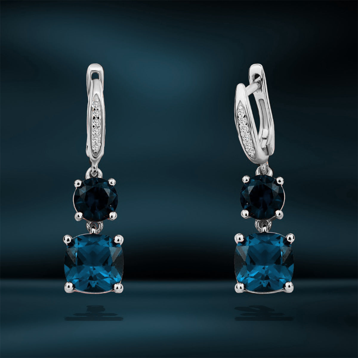 حلق فضة عيار 925 أنيق بفصين توباز أزرق لامع