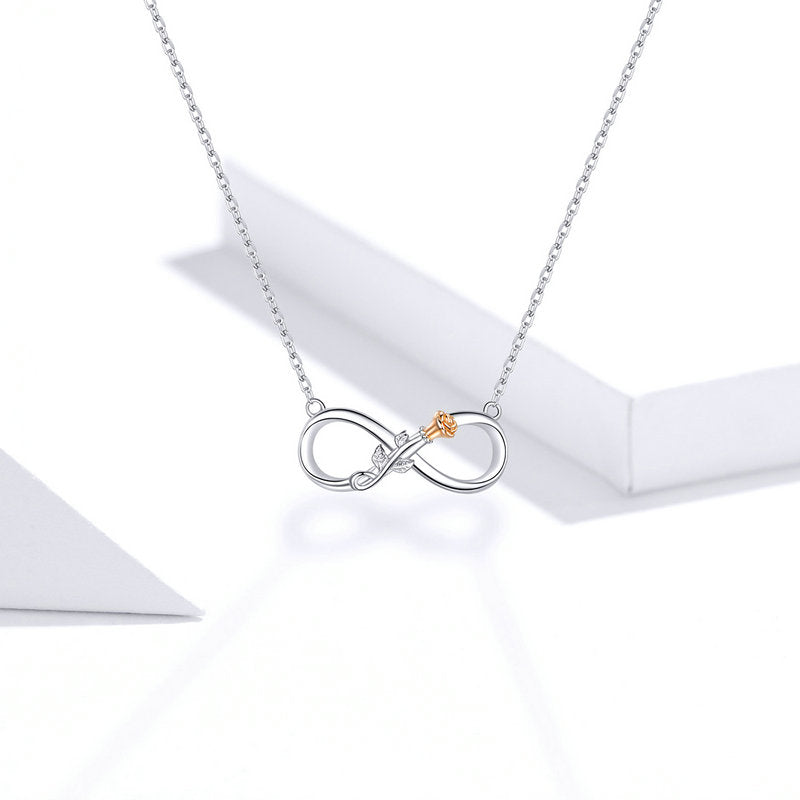 عقد فضة عيار 925 علي شكل انفينيتي مع وردة