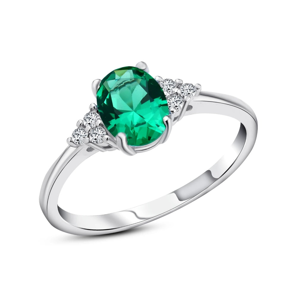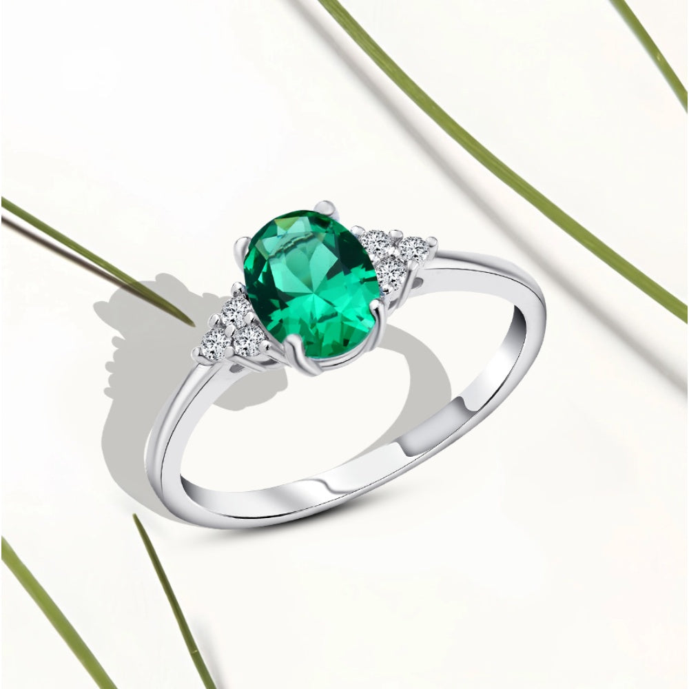 خاتم لمسة الزمرد – فضة عيار 925 بحجر طبيعي أخضر وقاعدة مرصعة بفصوص لامعة