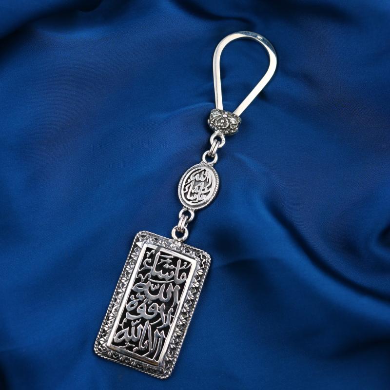 KS134-1 - ميدالية مفاتيح فضة مصري (ما شاء الله)(ماشاء الله لا قوة الا بالله)