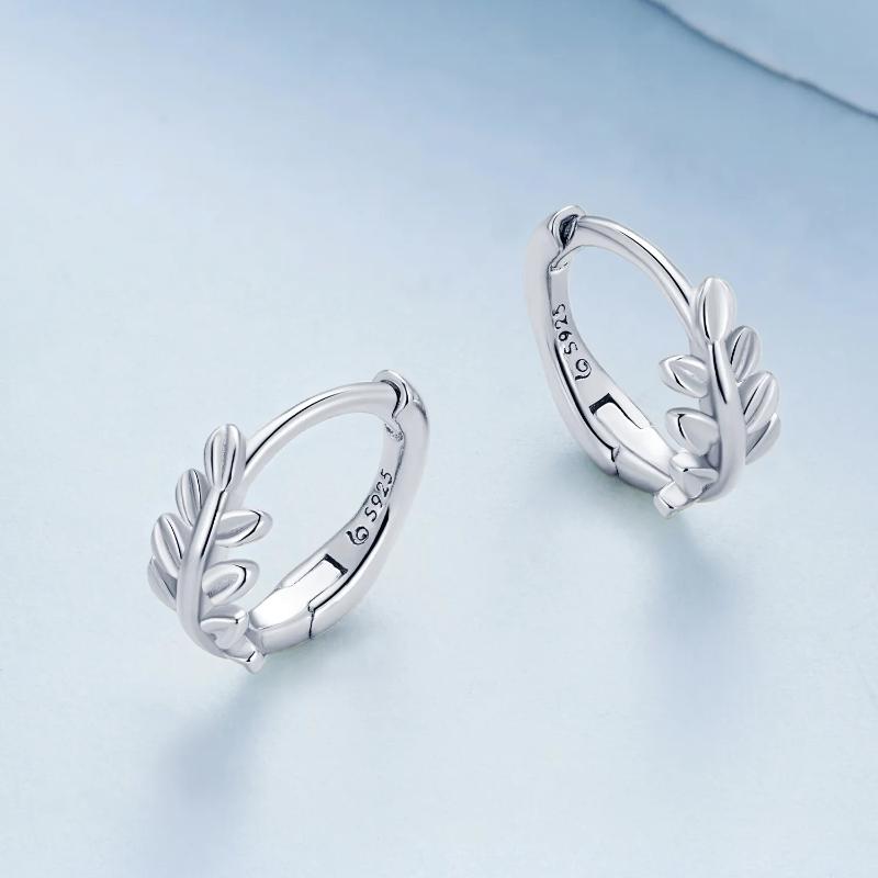 حلق أوراق الشجر فضة عيار 925
