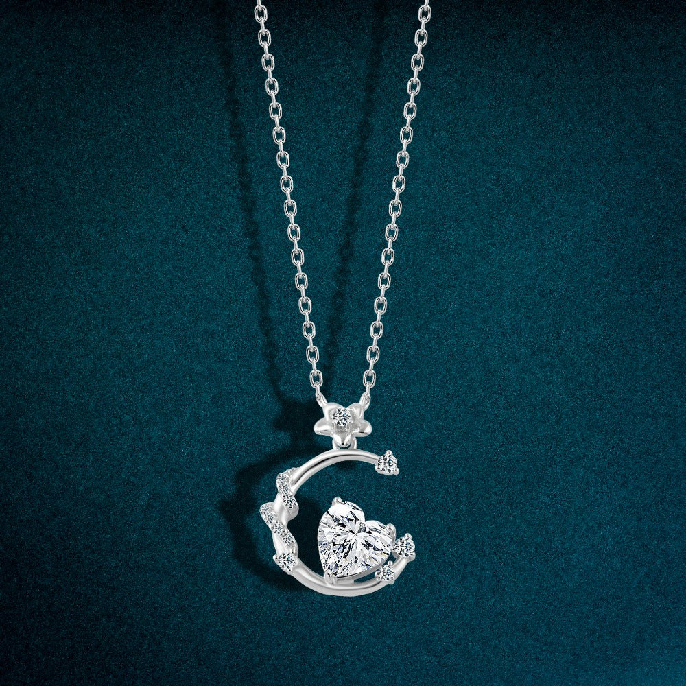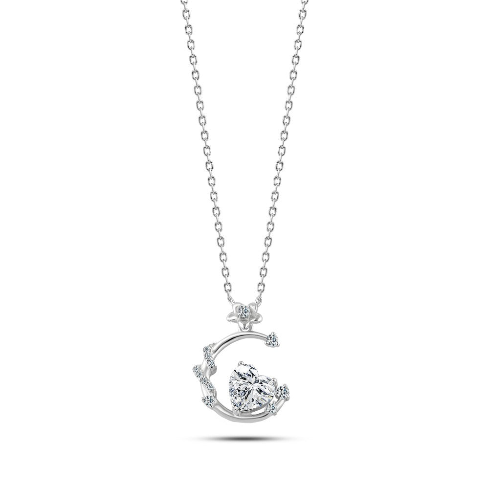 عقد فضة إيطالي عيار 925 مرصع بفصوص الزركون اللامعة، يتميز بتصميم فريد وأنيق على شكل هلال، حيث يتوسطه قلب صغير يحتضنه الهلال بشكل رقيق، مع وردة صغيرة فوقه تضفي لمسة من الرومانسية والجمال. التصميم يجمع بين الفخامة والبساطة، مما يجعله خيارًا مثاليًا للمناسبات الخاصة أو كإضافة مميزة لإطلالتك اليومية، حيث يعكس الأنوثة والذوق الرفيع