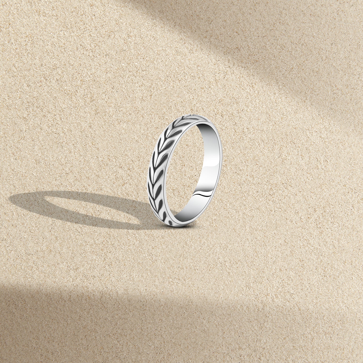 دبلة رجالي فضة عيار 925 بتصميم يدوي علي شكل سنابل القمح