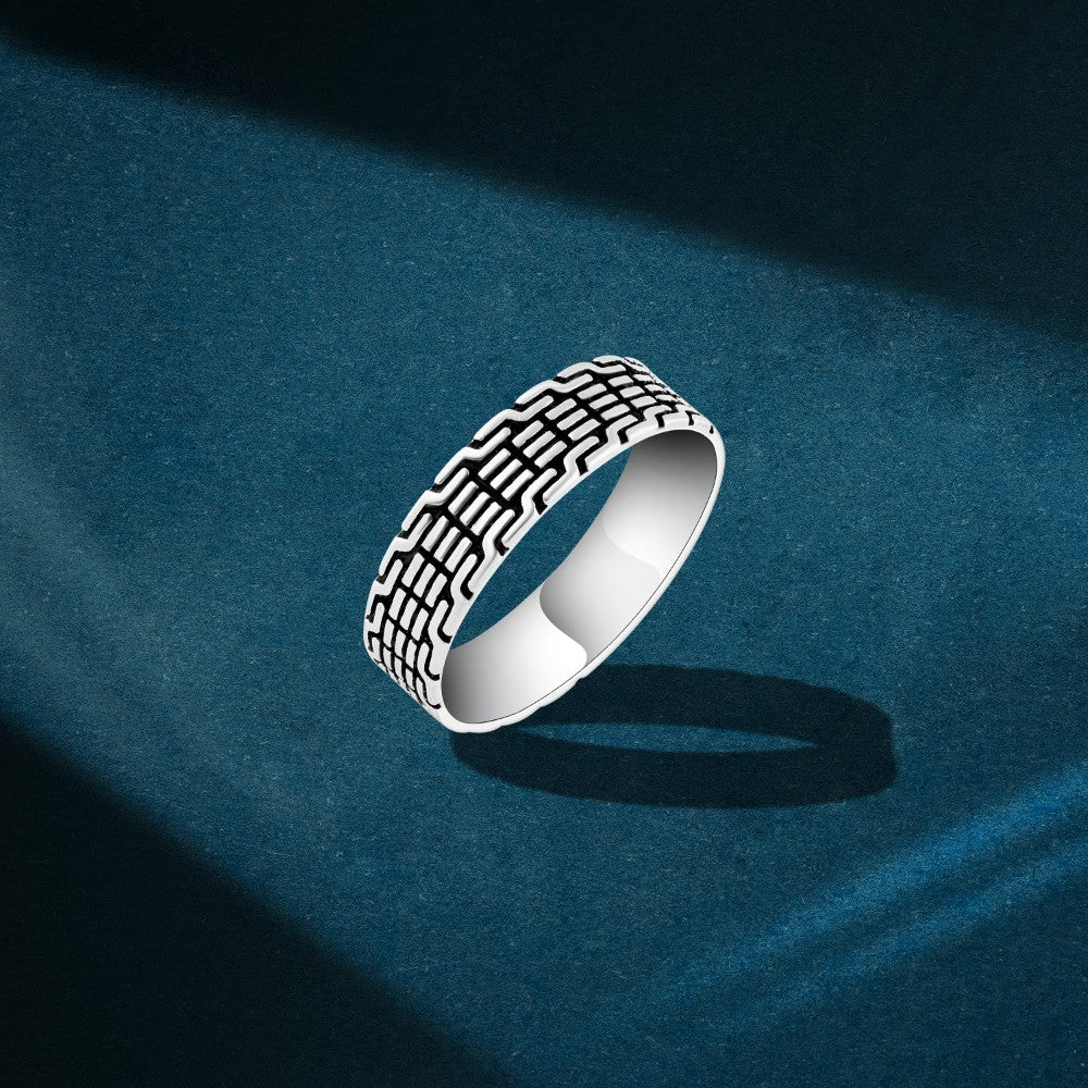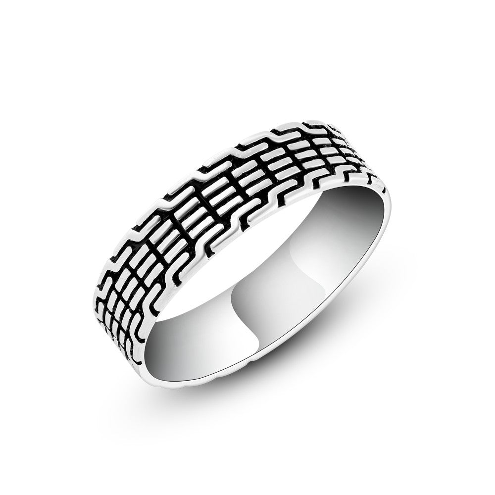 دبلة رجالي فضه تركي عيار 925 - بلاتين مزخرفه بشكل مميز