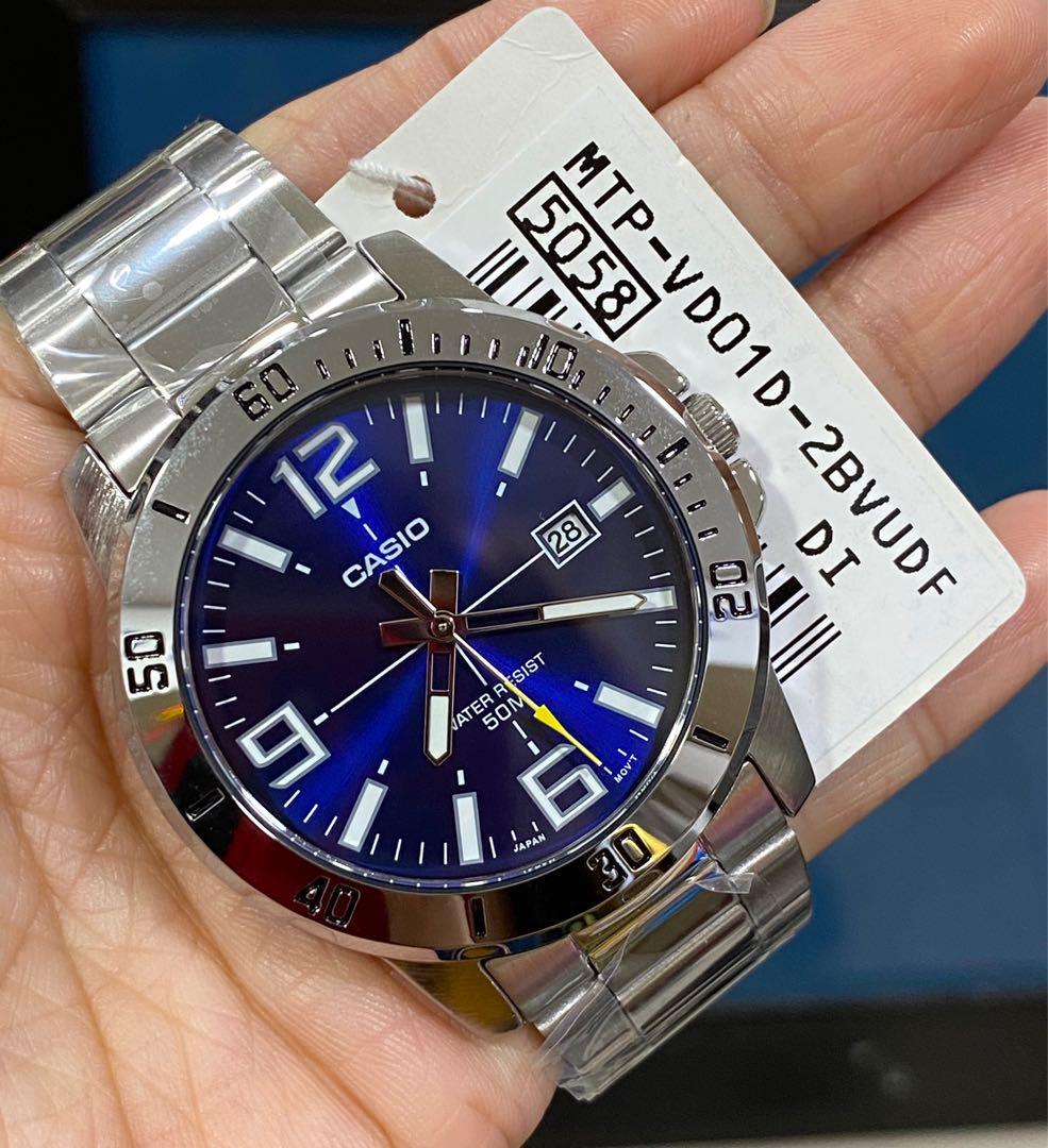مكونات ساعة كاسيو رجالي ستانلس ستيل بميناء أزرق