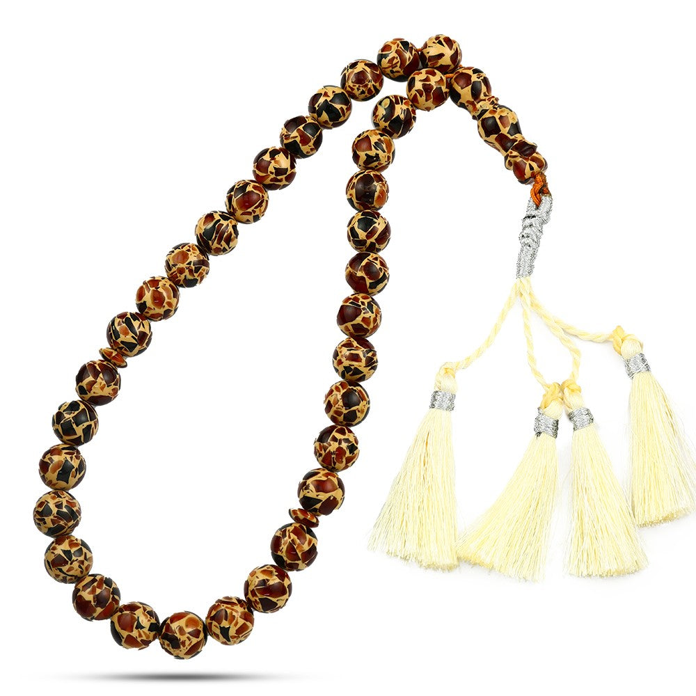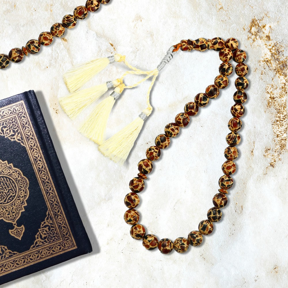كل حبة في هذه السبحة مصنوعة بعناية من تراب العنبر الطبيعي، مما يجعل كل حبة فريدة في نمطها ولونها. تستخدم هذه السبحة للتسبيح والذكر، حيث تساعد على تعزيز التأمل والتركيز خلال الصلوات والأذكار.