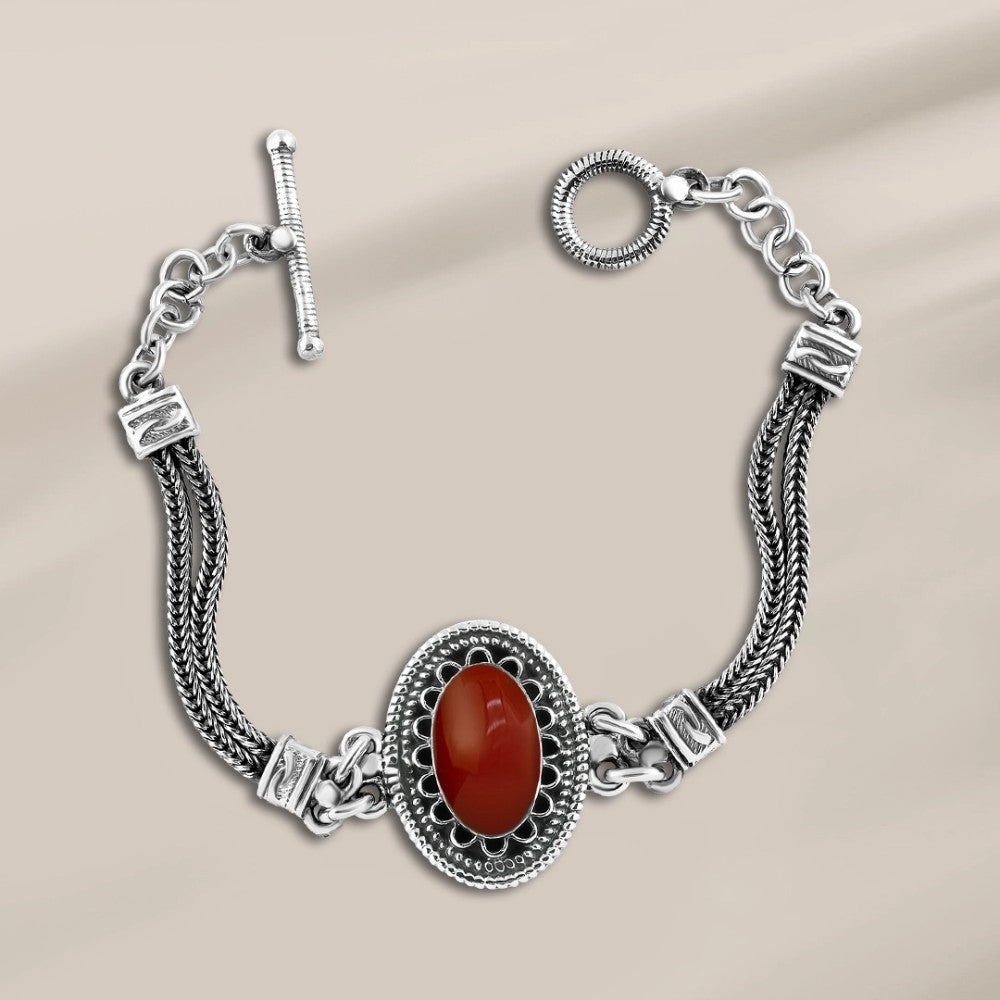 انسيال بيضاوي فضه مصري عيار925 متوج بحجر العقيق