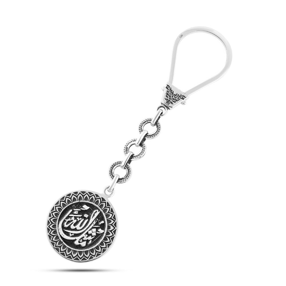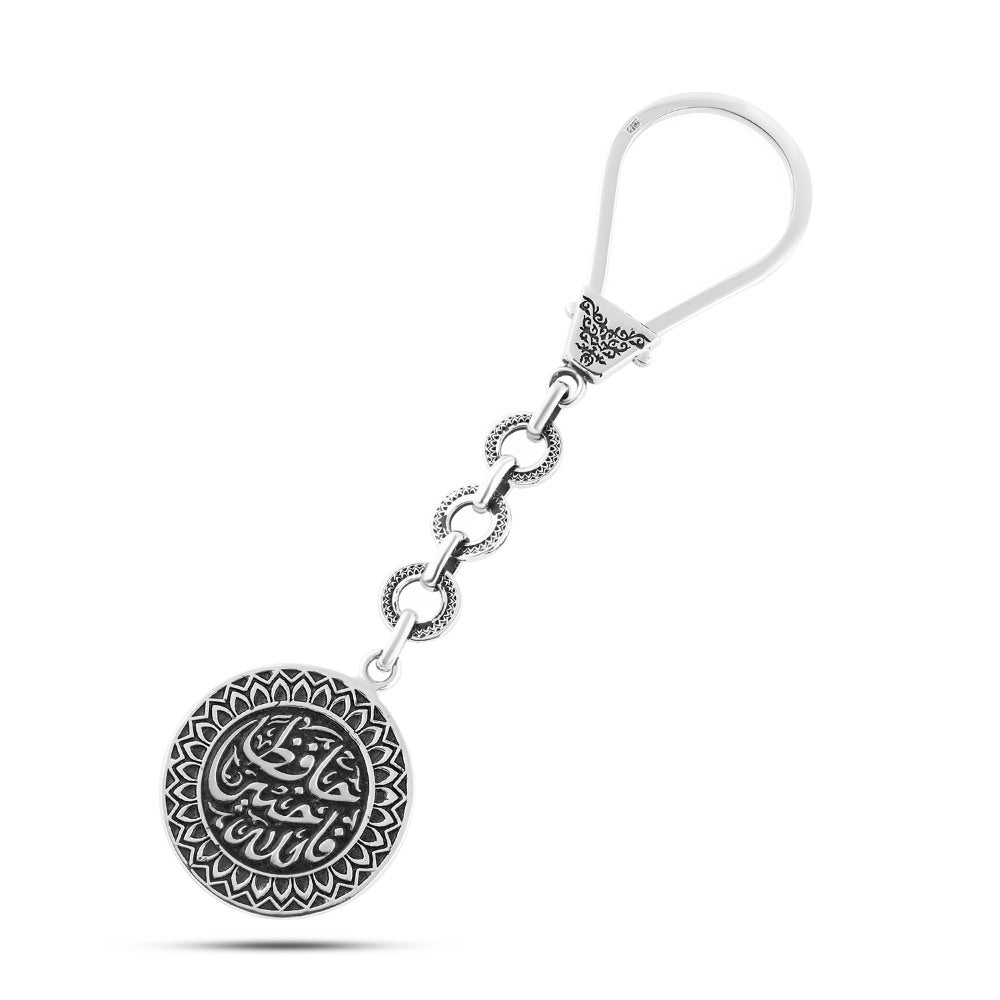 ميدالية مفاتيح فضة عيار 925 محفور عليها "فالله خير حافظًا" و"ما شاء الله" – تصميم روحاني مزدوج