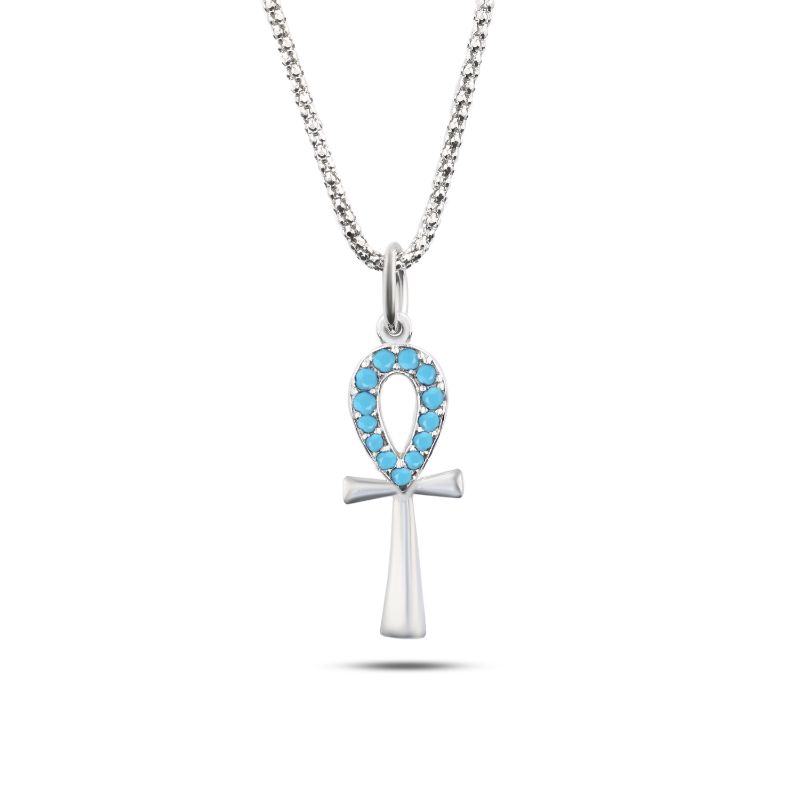 عقد فضة حريمي عيار 925 بدلاية على شكل مفتاح الحياة
