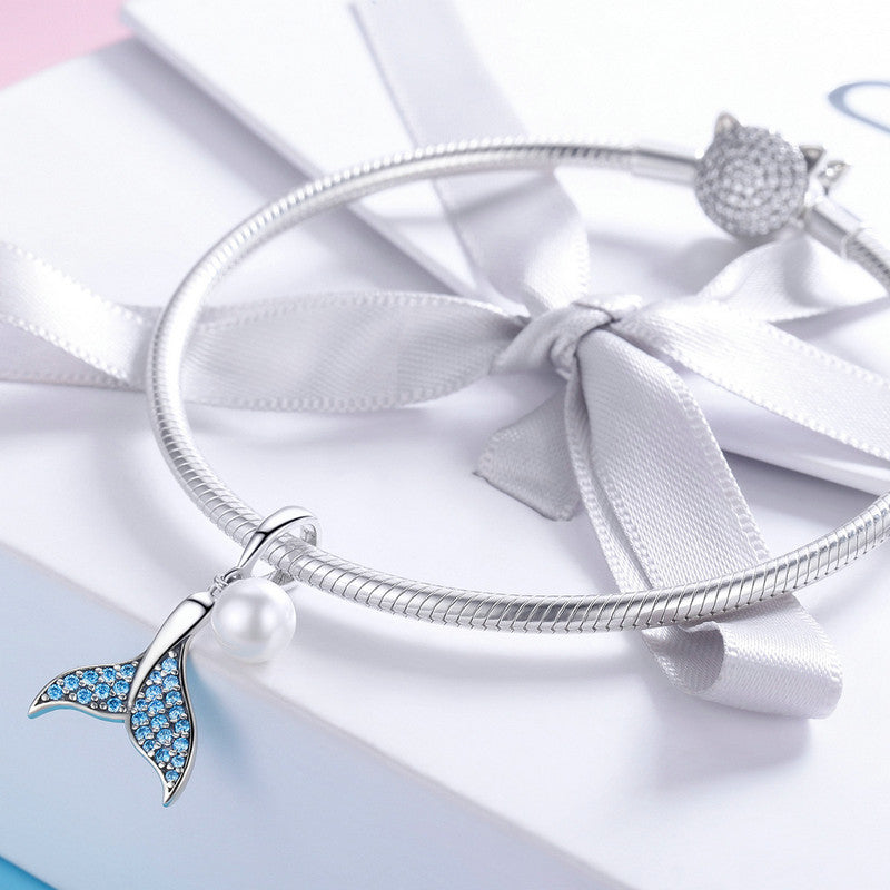 دلاية انسيال فضة عيار 925 علي شكل ذيل حورية البحر اللؤلؤ