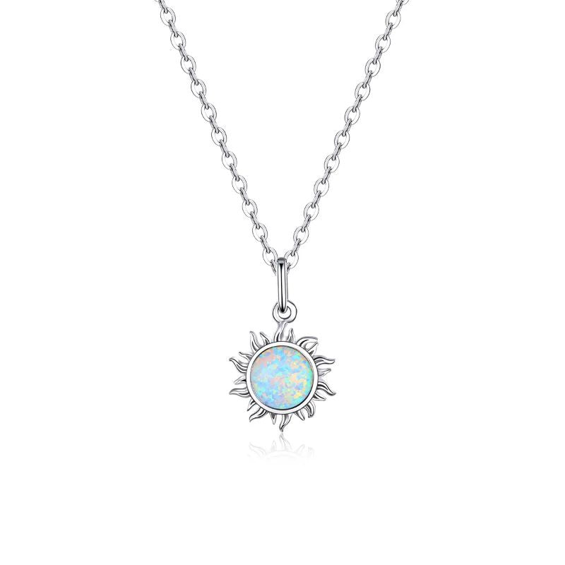 SCN399 - عقد فضة عيار 925 علي شكل شمس زرقاء
