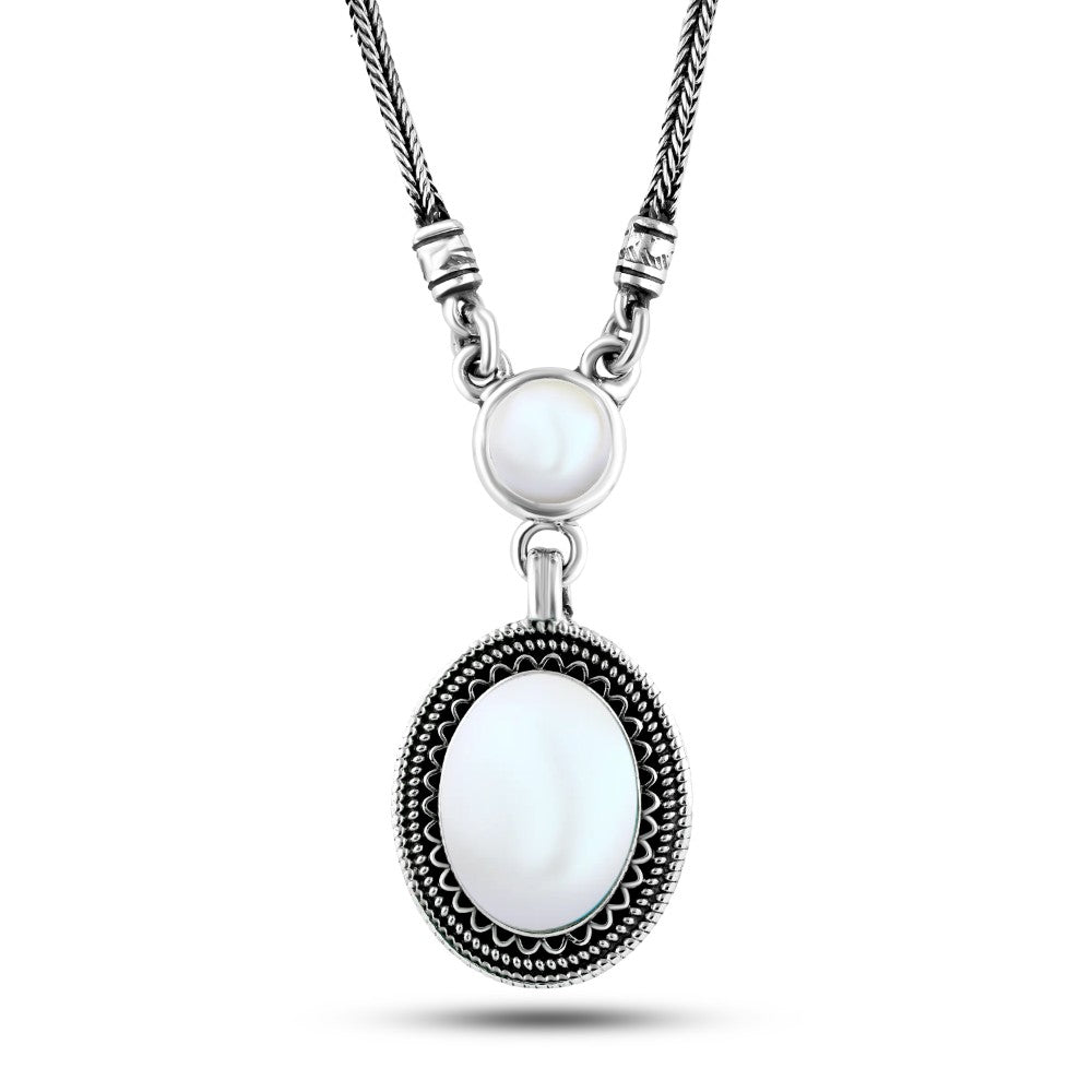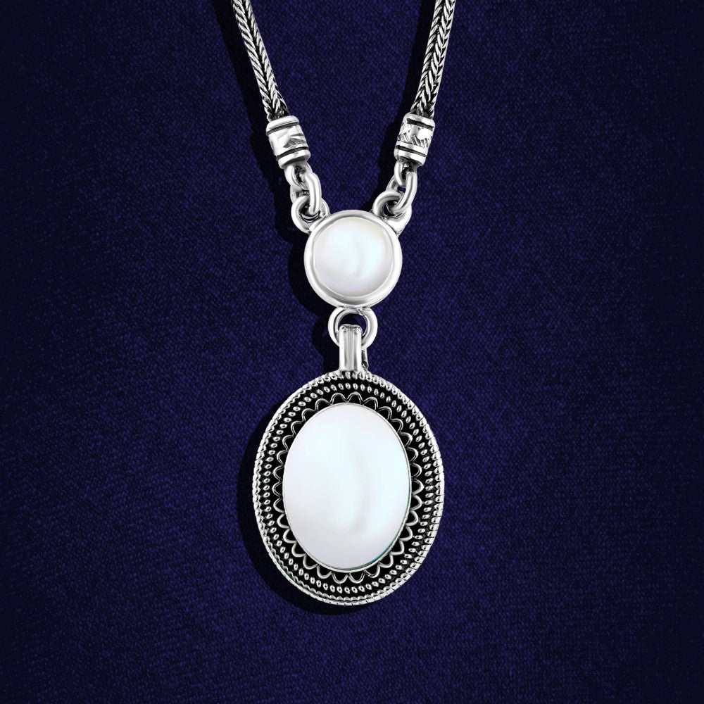عقد فضة مصري حريمي عيار 925 متوج بحجر صدف علي شكل بيضاوي