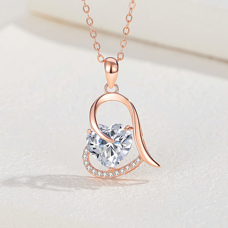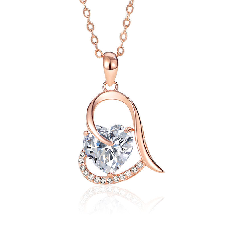 ارفع من أناقتك مع قلادة القلب اللامع . هذه القلادة الرائعة هي قطعة خالدة ستضيف لمسة من الأناقة إلى أي زي. مصنوعة من فضة عيار 925 ومطلية بالذهب الوردي، تتميز القلادة بشكل قلب رشيق مزين بحجر زركون لامع في الوسط ومحاط بأحجار زركون أصغر. القلادة مثالية للارتداء اليومي أو المناسبات الخاصة، مما يجعلها إضافة متعددة الاستخدامات لمجموعة مجوهراتك.