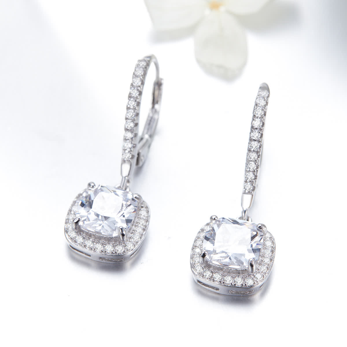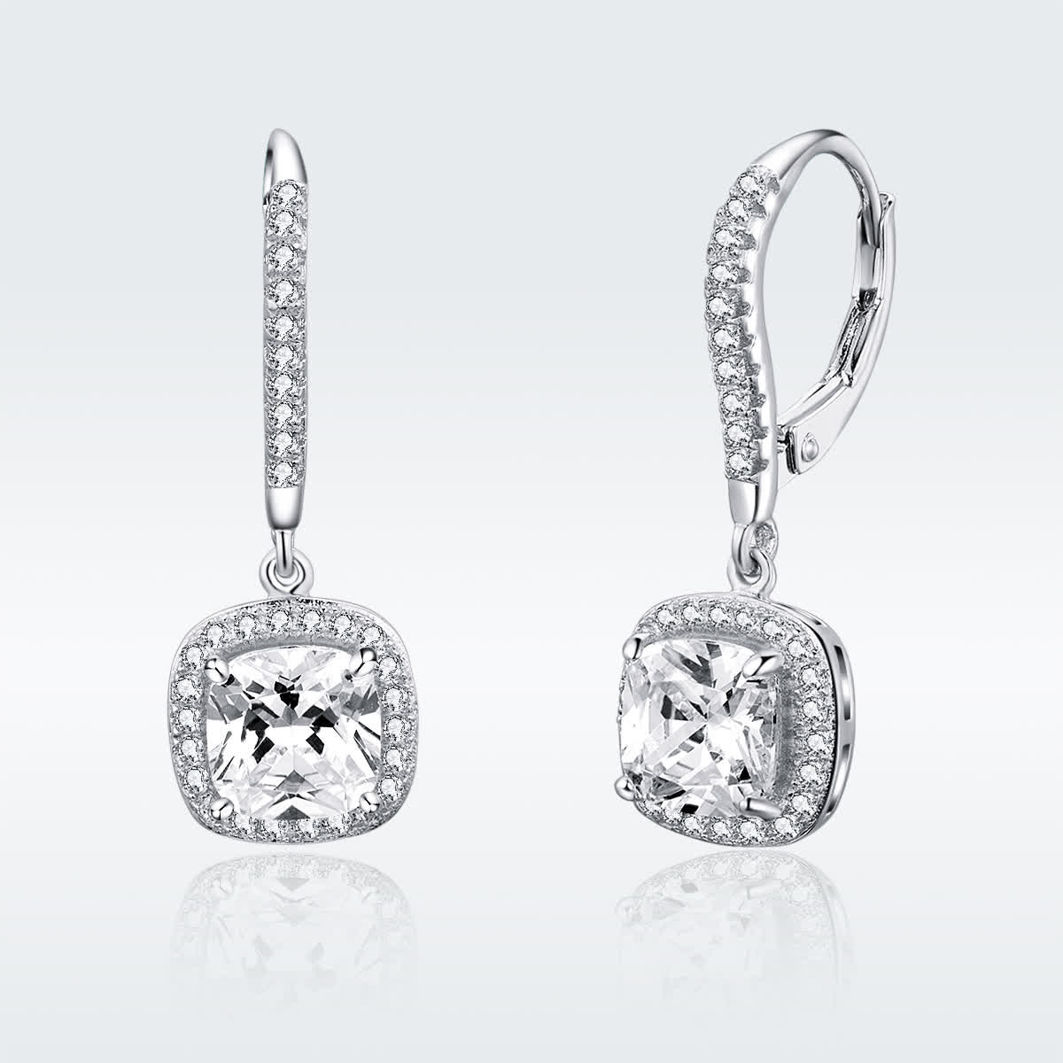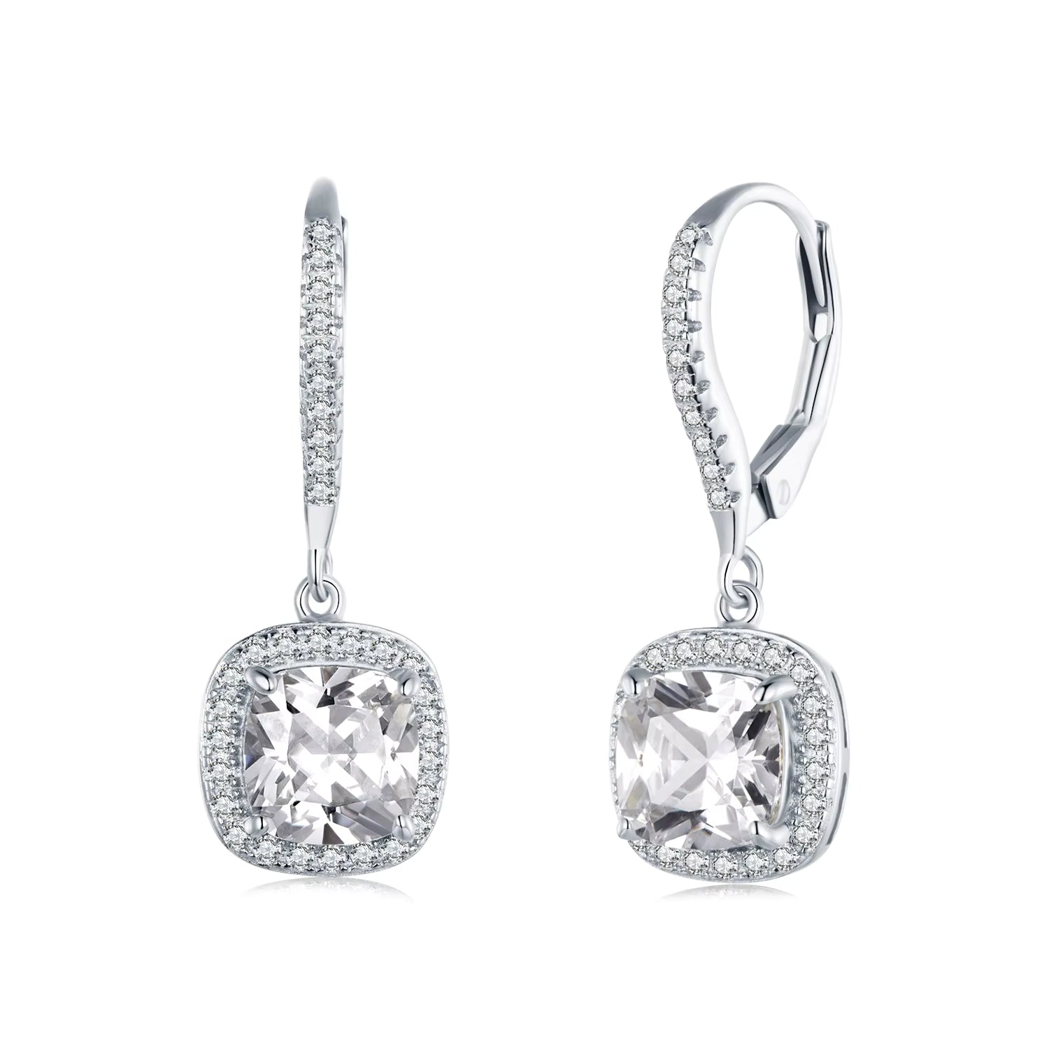 حلق فضه عيار 925 علي شكل مربع مرصع بفصوص الزركون اللامعة