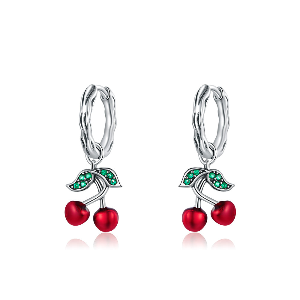 أضيفي لمسة من الحيوية والأنوثة مع حلق فضة عيار 925 على شكل كرز من فتحي إبراهيم، تصميم أنيق يجمع بين المرح والبريق في قطعة واحدة فريدة.