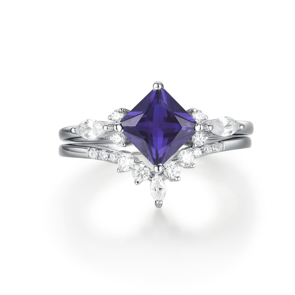 توينز فضة عيار 925 متوج بحجر من التانزانايت