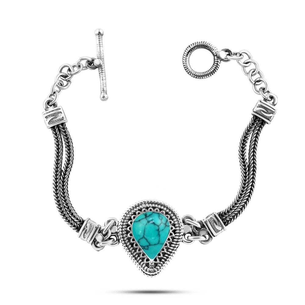 انسيال الدمعه فضه مصري عيار925 متوج بحجر فيروزي